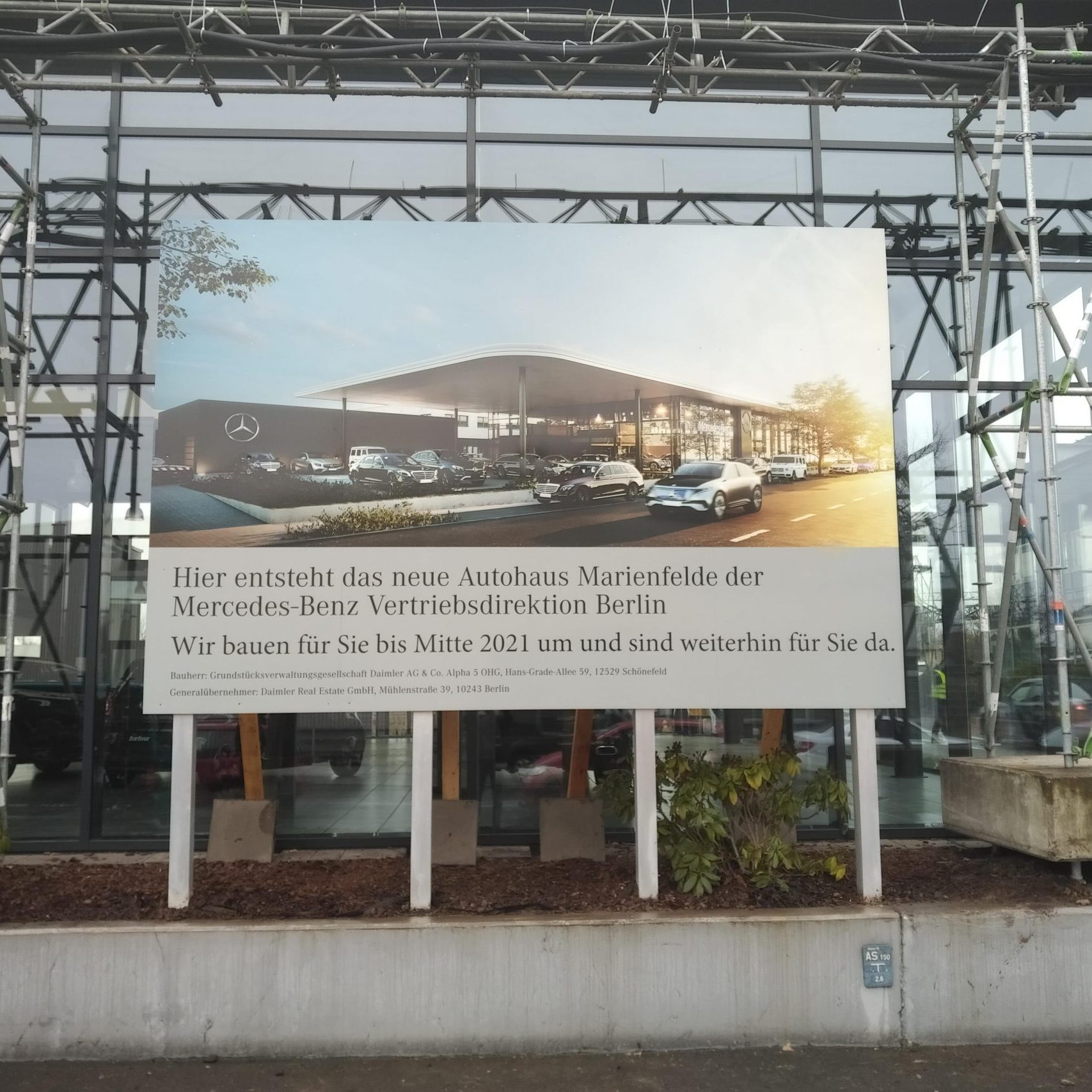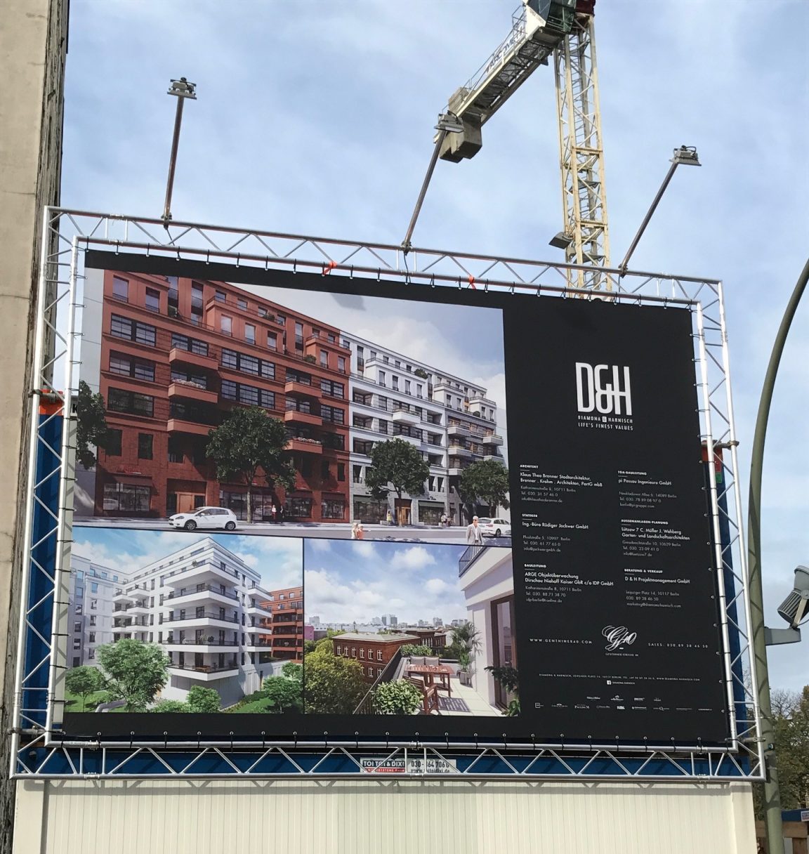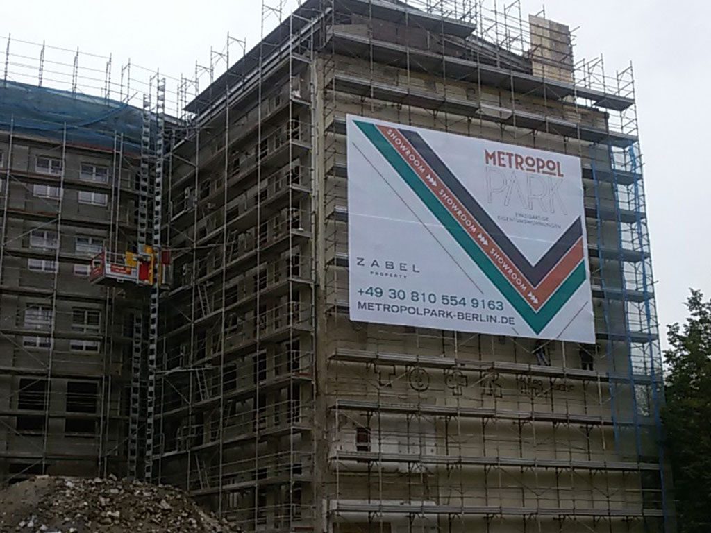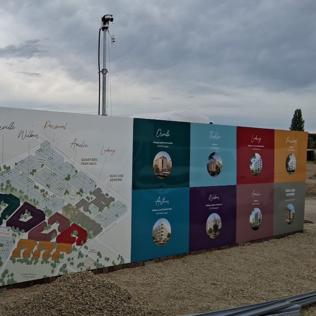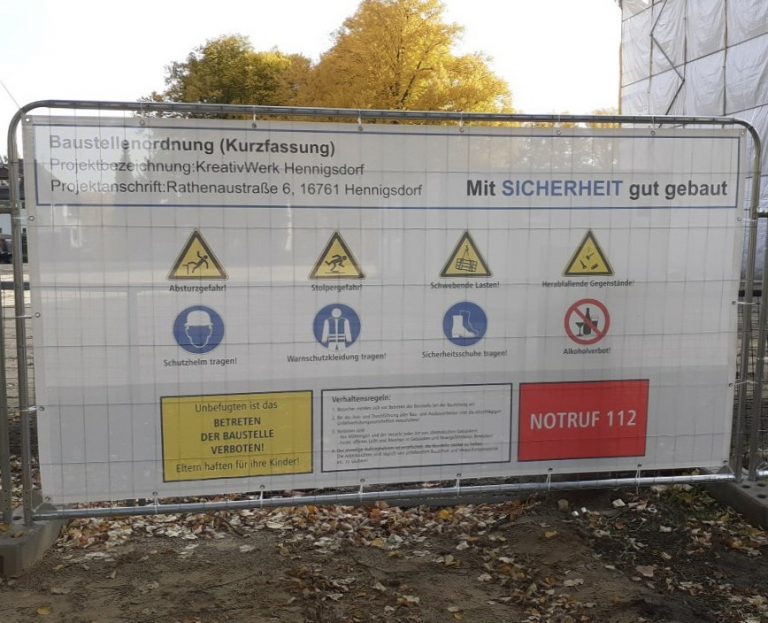 Je nach Ausführung des Bauzaunes, wer den Aufträge für Bauzaunwerbung als feste Platte aus Aluverbundstoff oder als Bannerplane umgesetzt. Durch die UV-Beständigkeit und einer zusätzlichen Schutzbeschichtung lassen sich die Materialien längerfristig einsetzen und problemlos reinigen. Bei klassischen Drahtgitterbauzäunen verwenden wir ein Netzgitterbanner zur Windlastreduzierung. Für Holzbauzäunen kann die Ausführung zwischen Platte und Vollplane variieren.