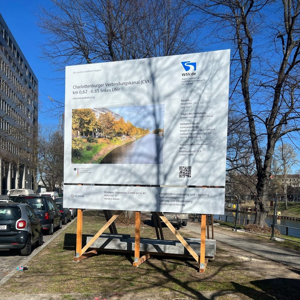 Bauschilder vom Typ 1 mit einer Holzunterkonstruktion zur Erdmontage sind eine Montagelösung mit einer Standzeit von bis zu 24 Monaten. Die Holzkonstruktionen wird hierbei standsicher im Erdreich verankert. Eine Beleuchtung des Schildes kann durch LED-Langarmstrahler erfolgen, die über einen Dämmerungsschalter gesteuert werden.
