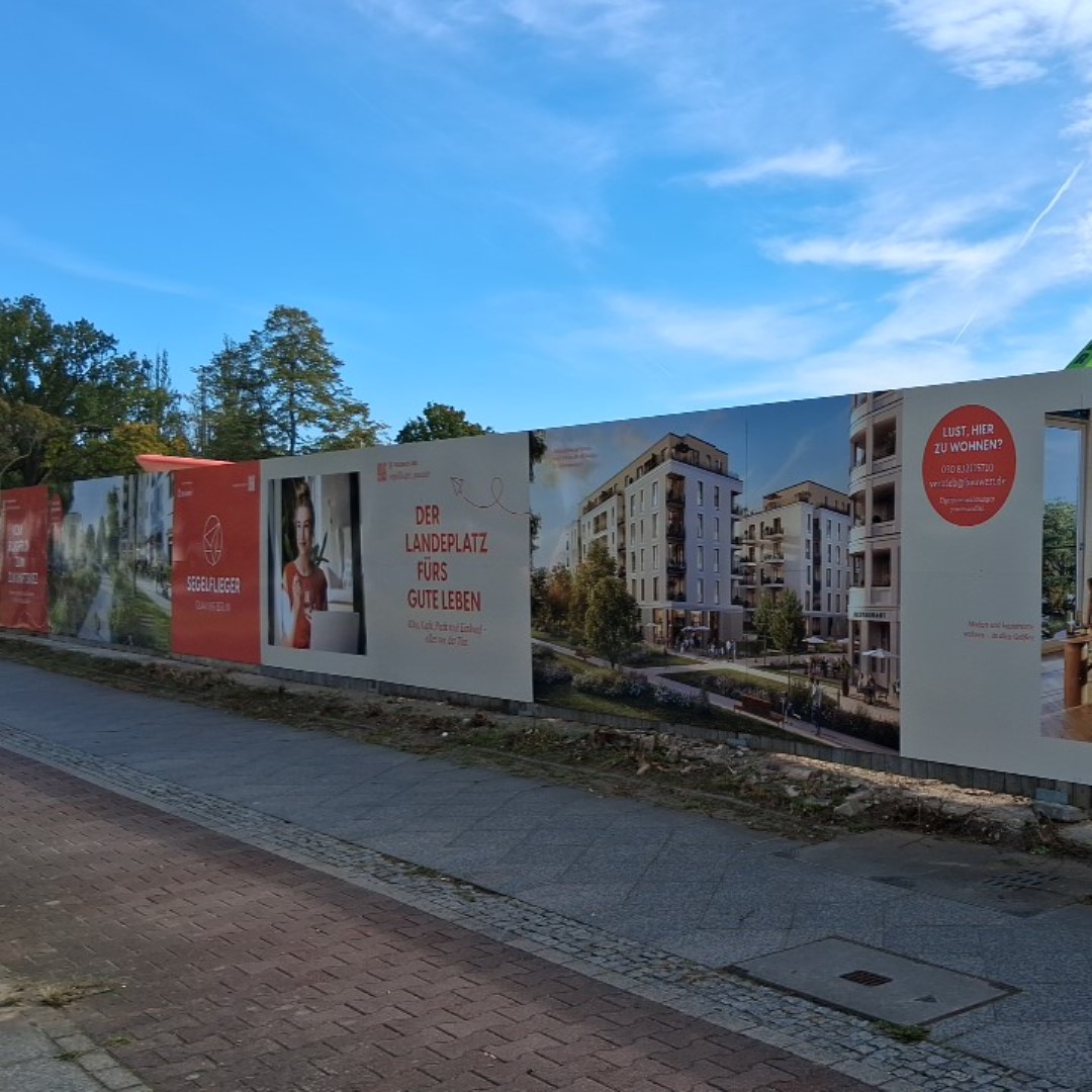 Je nach Ausführung des Bauzaunes, wer den Aufträge für Bauzaunwerbung als feste Platte aus Aluverbundstoff oder als Bannerplane umgesetzt. Durch die UV-Beständigkeit und einer zusätzlichen Schutzbeschichtung lassen sich die Materialien längerfristig einsetzen und problemlos reinigen. Bei klassischen Drahtgitterbauzäunen verwenden wir ein Netzgitterbanner zur Windlastreduzierung. Für Holzbauzäunen kann die Ausführung zwischen Platte und Vollplane variieren.